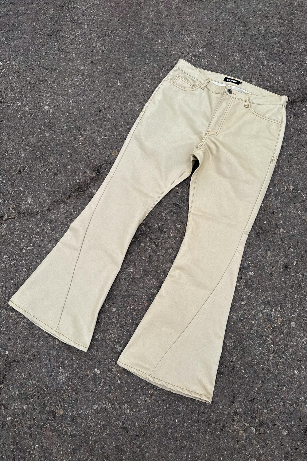 Beige Side Cut Flared Jeans